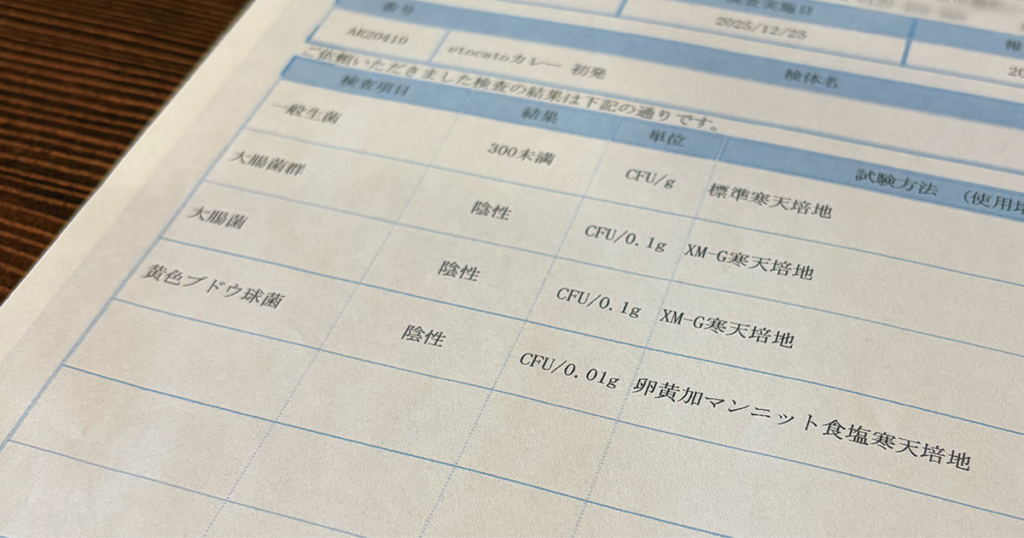 その結果、すべての商品において安全基準をクリアし、食中毒の原因となる菌についても「問題なし(陰性)」との判定をいただきました。
